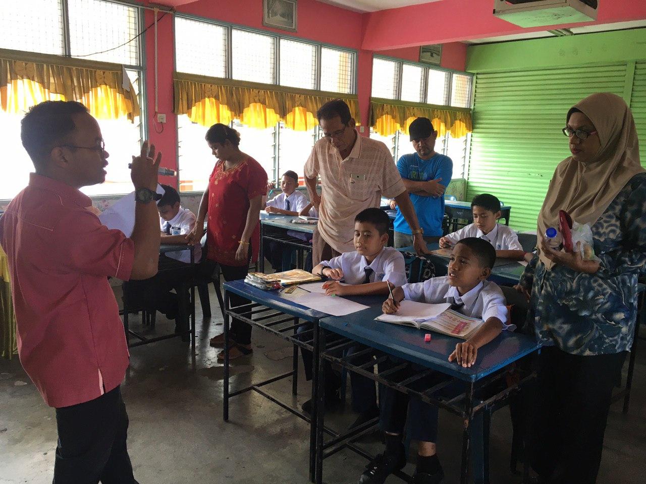 Kaunter pendaftaran mula sibuk menyantuni kehadiran ibu bapa / penjaga calon UPSR 2020